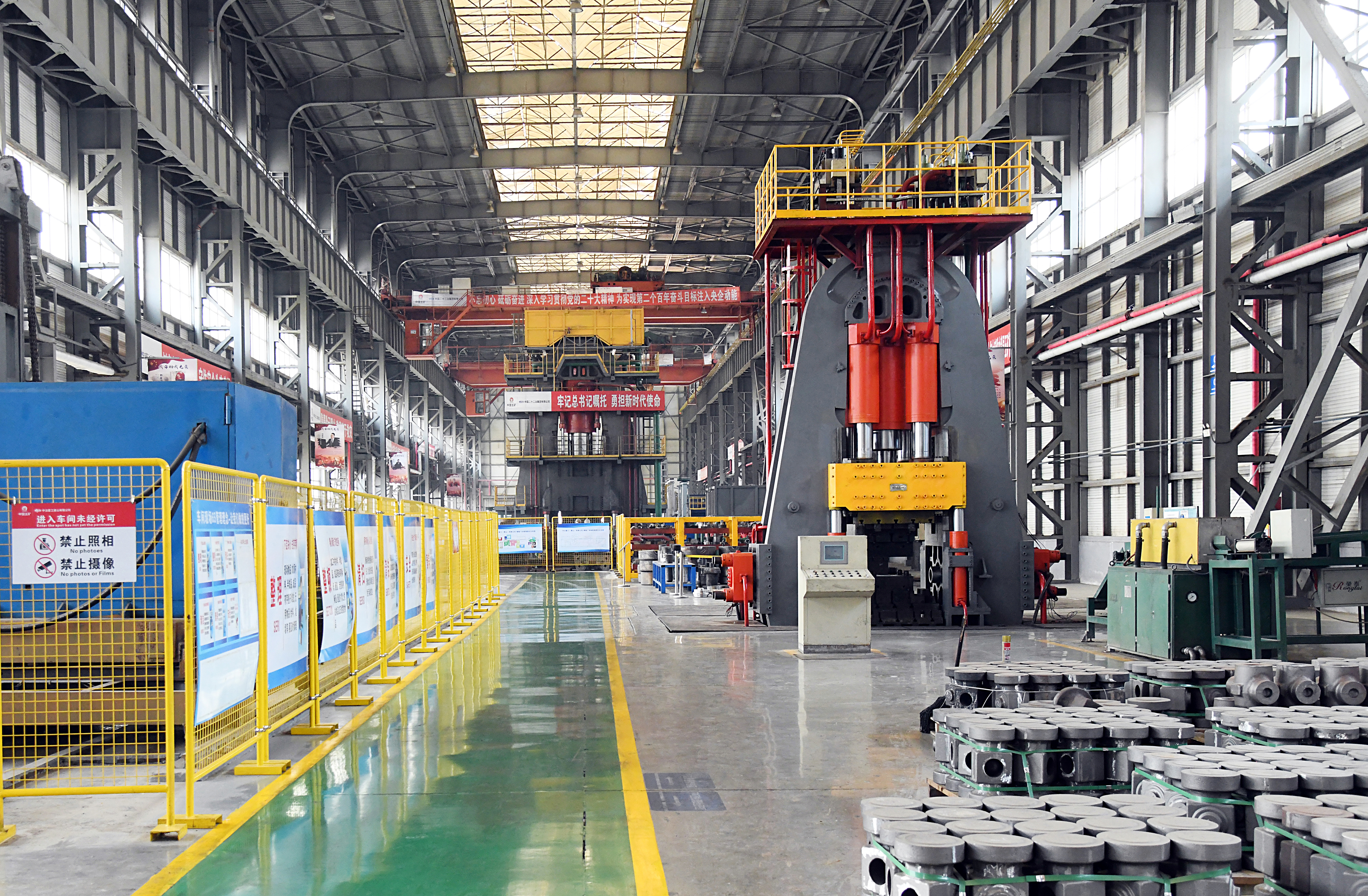 由中國二十二冶生產(chǎn)的重型壓機(jī)及產(chǎn)線擁有預(yù)應(yīng)力鋼絲纏繞、特重型設(shè)備原位安裝、厚板焊接等核心技術(shù),產(chǎn)品涵蓋(多向)模鍛液壓機(jī)、板片成型液壓機(jī)、換熱片壓機(jī)、海綿鈦壓機(jī)、特色中小型壓機(jī)等工藝生產(chǎn)線及配套設(shè)備。產(chǎn)品榮獲國家科學(xué)技術(shù)進(jìn)步獎、國家優(yōu)質(zhì)工程獎、冶金科學(xué)技術(shù)獎、魯班獎等多項榮譽。
